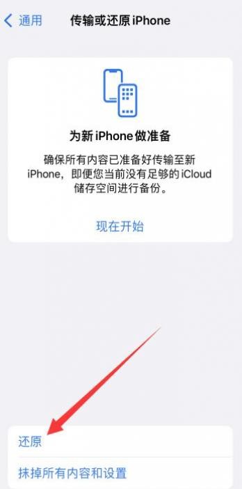 点按“传输或恢复iPhone”选项,然后点按“恢复”。
