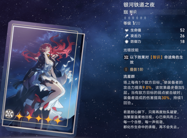 提供18%自身增加的伤害和48%沈骏增加的伤害。