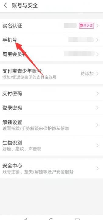 单击帐户和平安选择手机号码选项。