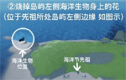 2.在岛屿左侧的海洋生物上烧花,位于祖先所在岛屿的左边缘,如图。