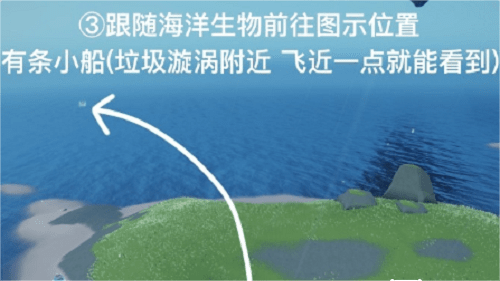 3.跟随海洋生物到达图中所示的位置。有一艘船。如果你飞近垃圾漩涡附近就能看到。