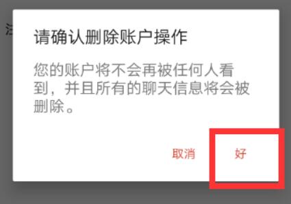 6、最后在弹出的窗口中点击“确定”注销账号。