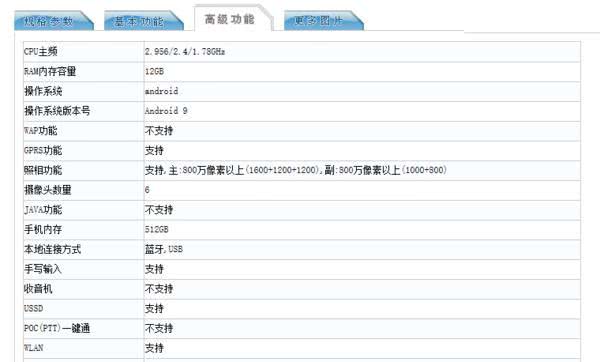 3、核心配置方面,三星W20 5G疑似搭载高通骁龙855 Plus旗舰平台(官网显示CPU频率为2.96GHz)