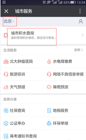 进入城市服务,点击城市用水查询,目前默认是北京地区。