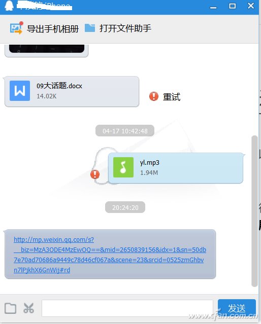 当然,如果你不想直接在手机上浏览,也可以在打开微信后点击“菜单→分享到手机QQ”,然后打开QQ后“将网站发送到你的电脑”,这样就可以在公司电脑上打开地址,直接在电脑上浏览。