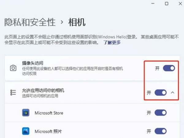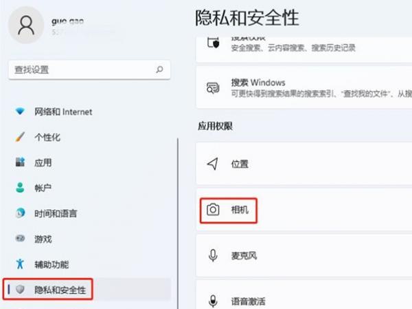 -单击隐私和安全面板中的摄像头选项。