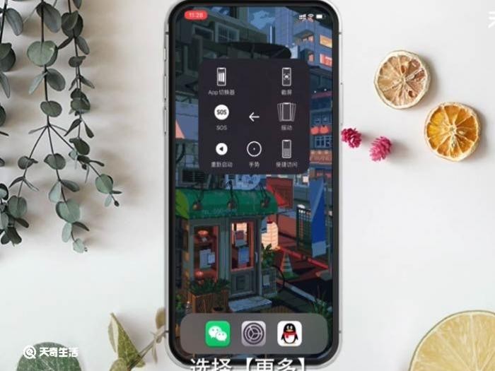 总结:选择点击【辅助触摸】,打开,选择【设置设备】,选择【更多】,点击【重启】,弹出窗口选择【重启】。