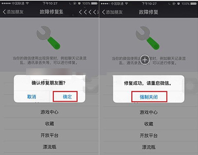 3.最后,如果工具微信出现问题,选择修复。比如微信朋友圈异常,在之前的选择中点击“朋友圈”,然后在提示中点击“确定”确认修复,完成修复。