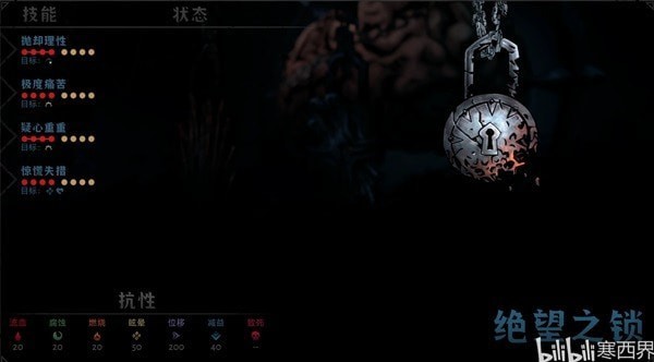 四把锁可以分别锁定近战/远程/压力/回血技能(这个boss除了锁定技能好像没什么可说的-)