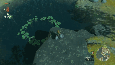 有时你会遇到漂浮在水面上的树叶组成一个圆圈图案,从高处跳入圆圈中间激活它。