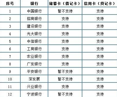 支持的银行列表如下: