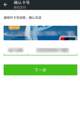 3.输入银行卡号并确认,然后点击下一步。