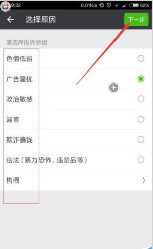 投诉的理由那么多,根据情况选一个。一般只是广告和垃圾信息。