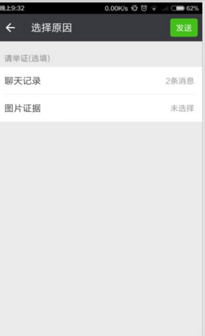 选择对方发来的广告或垃圾聊天记录作为证明。有时候对方撤了,你可以截图留存,上传证据。