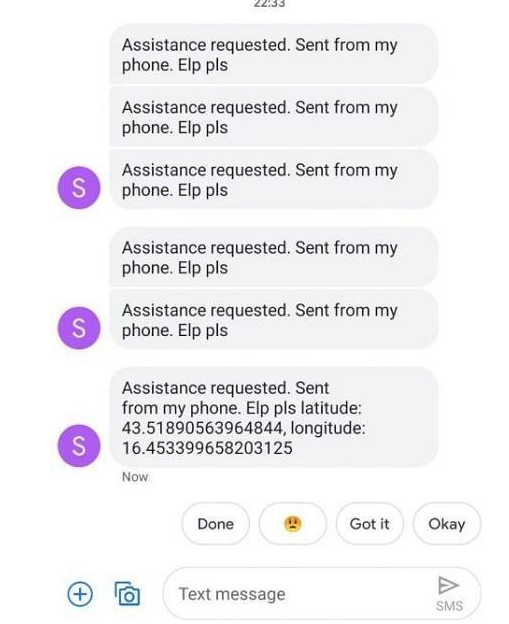 并向您发送包含您所在位置(经度和纬度)的短信。