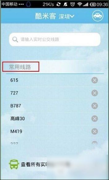 进入“久米克巴士”页面,可以看到如图所示的常用路线。 (一般情况下,在使用过程中,如果您搜索过公交线路,这里会默认出现。)