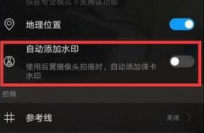 第三步:进入设置菜单后,找到并点击打开【自动添加水印】开关即可在拍照时添加水印,关闭该开关即可去除水印。