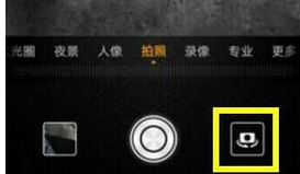 第二步:点击右下角摄像头按钮旁边的图标切换后置摄像头后,点击右上角的设置图标,