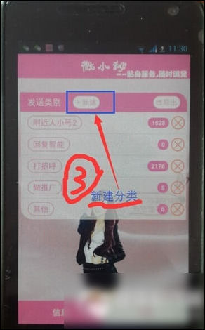 3、点击底部菜单“信息”,点击新建发送类别,如下图