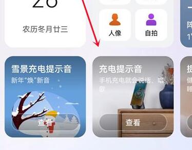 2、然后在图标所示位置找到“充电提示”并进入。 (如果没有则向右滑动)