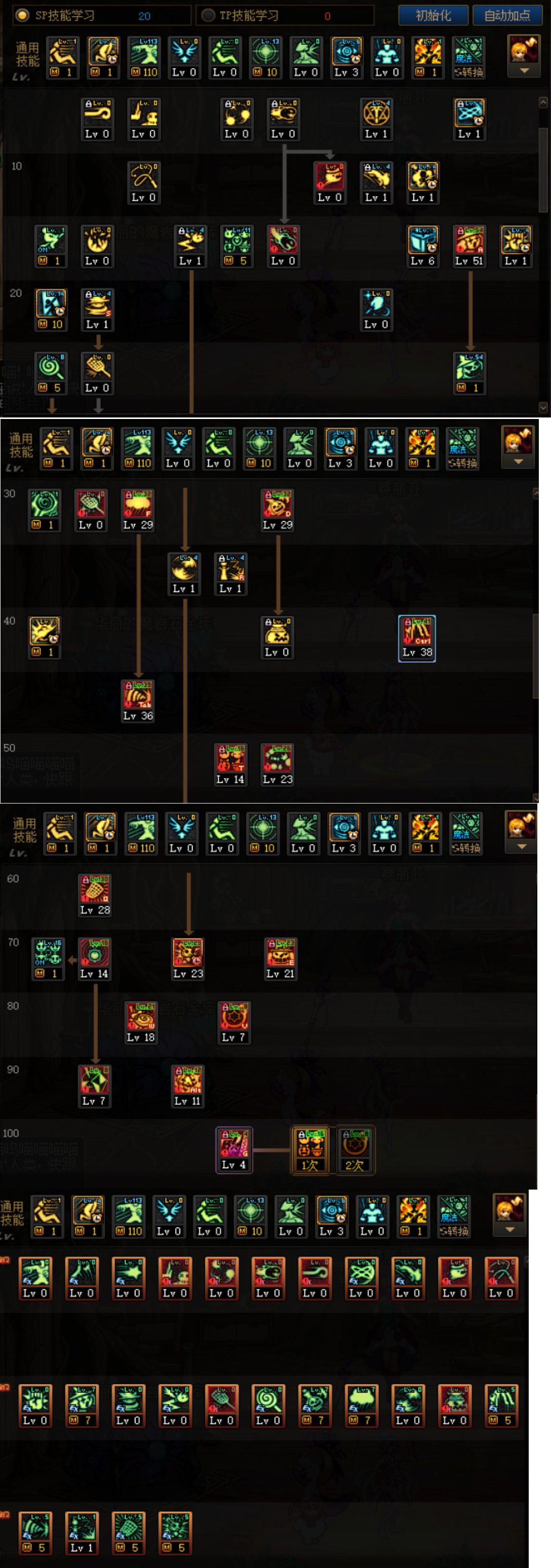 110级巴卡尼版魔道熔岩瓶满,爆炸加热炉满,酸雨云满,冰霜钻车满;70级以上的技能除了光电兔需要石头保护,被改造成脱手器,都要补。其他器械/功能技能根据个人喜好选择点1或点满。魔术表演、棒棒糖和暴击可以根据装备建造的等级进行调整,以节省SP。