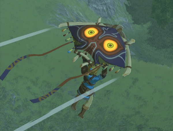 然后将Amiibo对准手柄的NFC感应区域。之后游戏中会奖励一些武器装备,还有一些可塑性材料等。大部分都是这些。如果是第一次使用它们,会奖励道具【滑翔伞的面料】,就是林克的滑翔伞的皮肤。