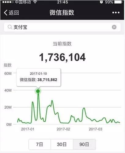 微信指数可以成为监控金主奶爸效果的利器。当然,对于买过朋友圈广告的土豪来说更是如此,再说判断热点。