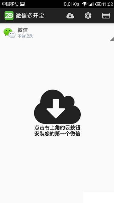 3.打开微信多开宝,点击右上角的云按钮,安装你的第一个微信。