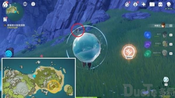 -跟着向导走,寻找碎片,在标志桌上标注的位置可以看到一个土墩人。