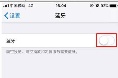 第三步:点击【蓝牙】右侧的按钮将其打开。