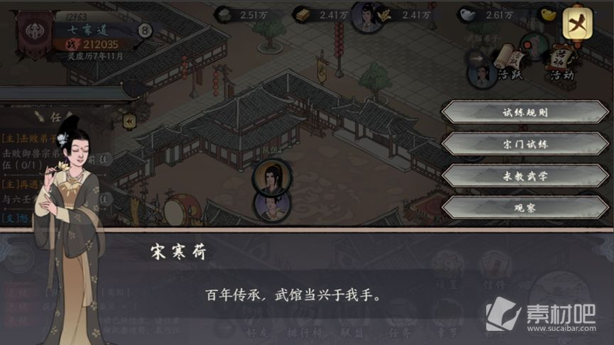 在季节活动的范畴里,还有一个鼓励掌门对战的活动,叫做宗门试炼,要求掌门到最近的城市找武馆主人参加。我们可以把武馆的主人匹配到其他实力差不多的宗门,互相竞争,互相学习。