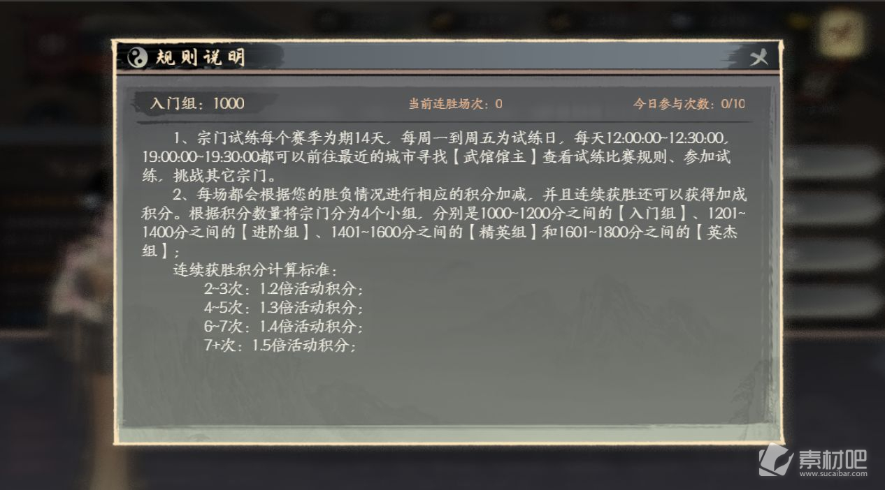 你也可以在武馆正门查看当前宗门所在的路段和试炼规则。