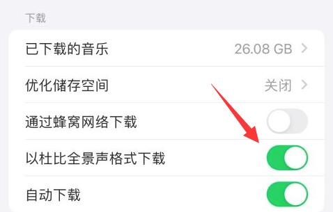 4.启用后,还需要在“下载”中启用“以杜比全景声格式下载”,否则下载的音乐无法使用杜比全景声。