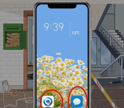 3.然后再次点击摄像头,回到原来的场景,钥匙就会出现在包里。拖动包上的钥匙开门,点开此人手机和浏览器的信息,找到搜索信息和聊天记录。