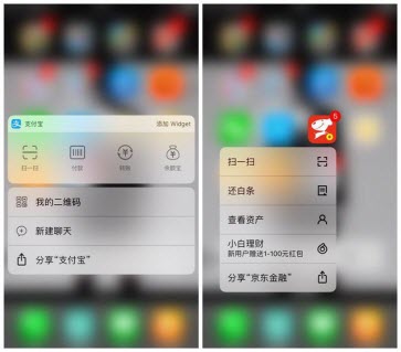这个只有iPhone 6S以上才有,叫3D Touch功能,一步唤醒支付。还可以使劲按支付宝,京东金融也可以,很多app都有支持。其实大家都可以试试,说不定会有惊喜。