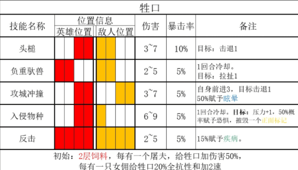 农场的牲畜利用率很高。除了以它们的肉为食,它也是主要的攻击单位。牲畜本身伤害不低,还可以用位移技能打乱我们的队伍。当动物处于1又3/4位置时,威胁相对较大。