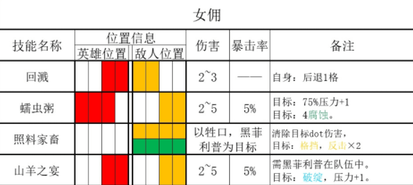 女仆为数不多的技能中,有两个是专门针对动物的。如果队伍中没有动物,他们只会在后排重读虫粥,或者在前排使用喷溅,回到后排。