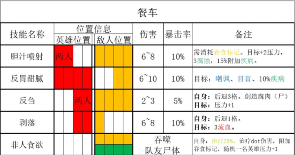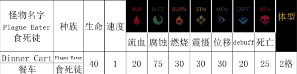 餐车占了两个车厢,耐腐蚀性高,但不耐出血。因为体型巨大,餐车的伤害也很吓人。好在这个大单位只能行动一次。