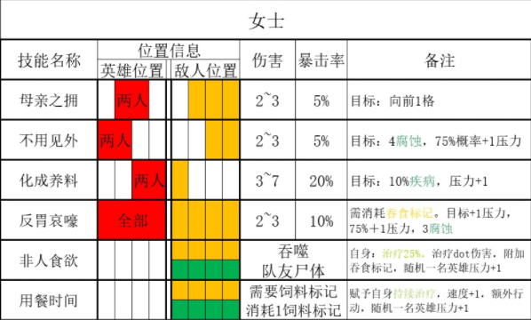 当女士吞噬友军一方的尸体时,她会使用强力技能,在肚子里哀嚎,给我们的性格增加很多压力,造成腐蚀效果。