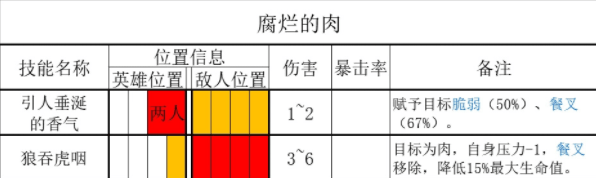 将技能替换为& ldquo狼吞虎咽& rdquo,狼吞虎咽只能指定& ldquo臭肉& rdquo或者& ldquo腐肉& rdquo对于目标来说,使用第二技能后,自己的压力会减少,但是最大生命值会减少15%,直到这场战斗结束。