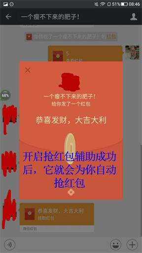 特别说明:本助手绝对安全,启用助手权限,快速接收红包消息。