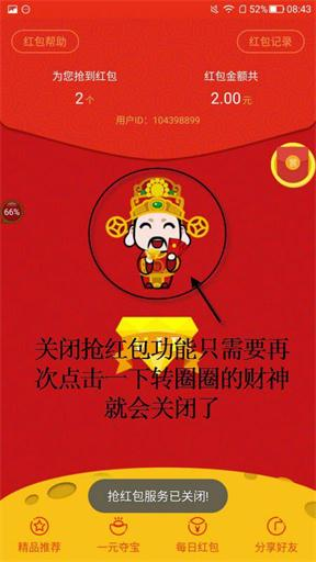 6.如果不想抢红包,只需返回【微信抢红包神器】首页,再次点击财神图标,关闭抢红包服务!