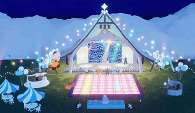 3.今年周年版的一些新内容已经穿上了测试服,还会有舞台表演的场景。和之前极光赛季差不多的千人空间,可以容纳很多玩家在这里互动观看。你也可以和你的朋友一起跳舞。