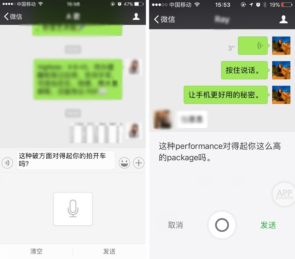 下图左图为更新前的语音输入,右图为更新后的语音输入。测试语句是“这样的性能配得上你的高包吗?”」