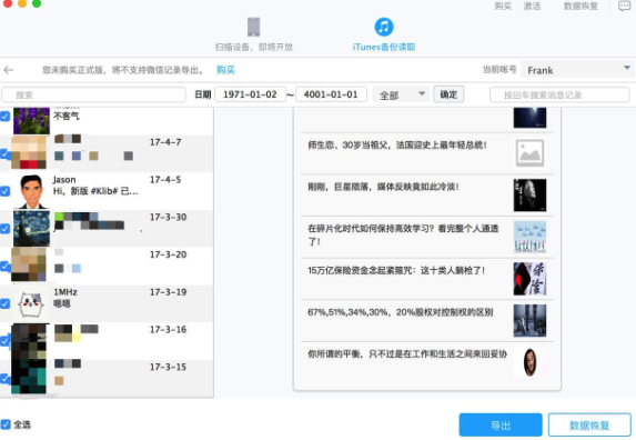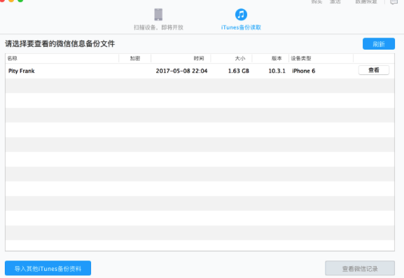 通过itunes完成备份后,就可以开始分析数据中的微信聊天记录,供用户后期预览。