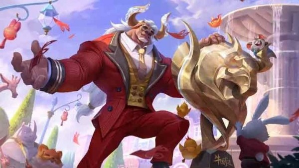 2.这款皮肤的设计围绕现代动物城的主题,展现了一个充满傲慢与欢乐的牛魔王形象。牛角上镶嵌的钻石,独特的武器奖杯设计,很有创意;