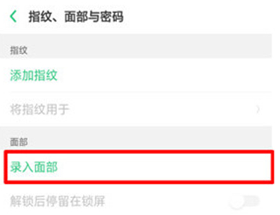第一步:进入oppoa7手机设置--指纹、人脸识别和密码--人脸识别