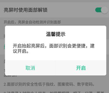 第四步:勾选亮屏时使用面部解锁,点击启用