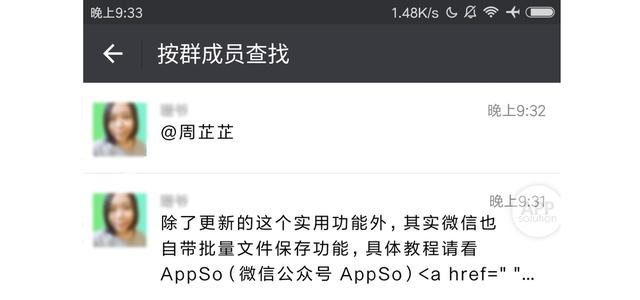 除了这个更新的实用功能,微信其实还有自己的批量文件保存功能。具体教程请看文章AppSo(微信微信官方账号AppSo)。