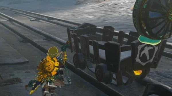 1.来到地图显示的位置,使用倒置的干坤把矿车带到这里。